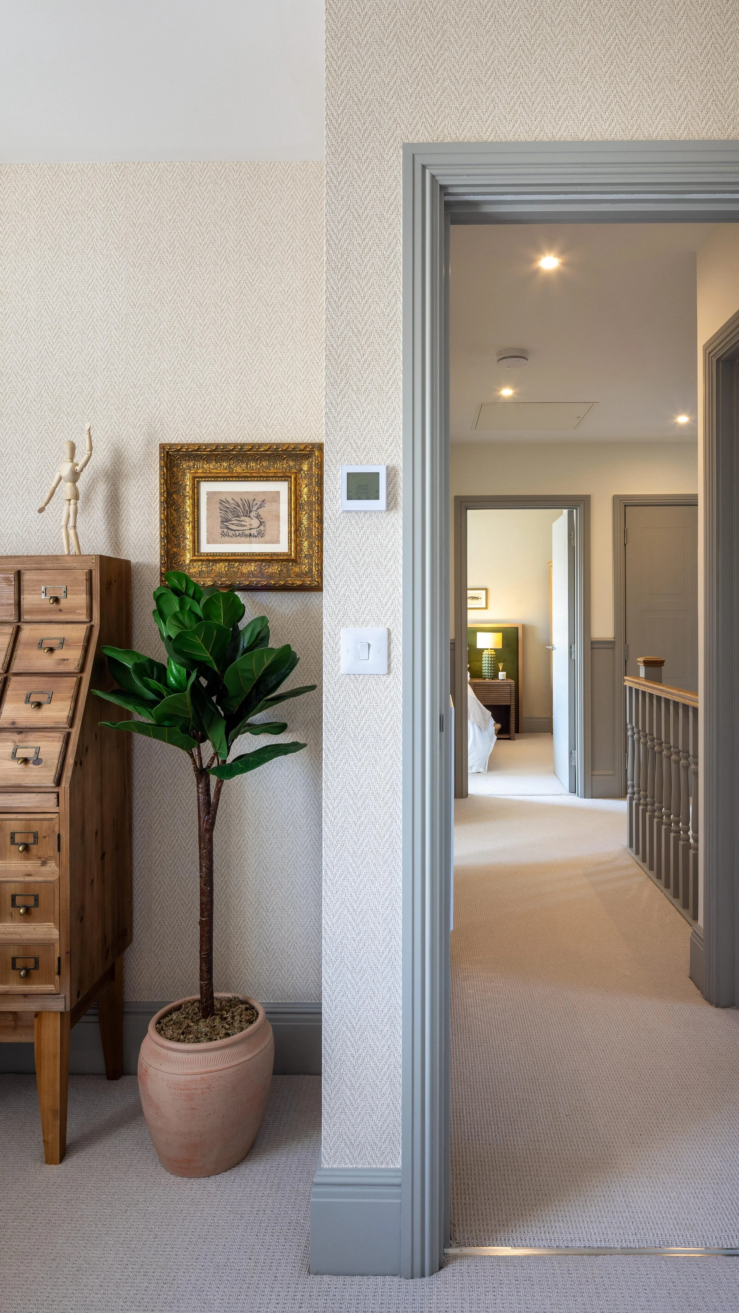 The scheme was designed to feel light, airy and welcoming, with an understated sense of luxury. Our aim was to create an atmosphere reminiscent of a boutique hotel — offering visitors a clear sense of the development’s quality and the high-end nature of the homes.